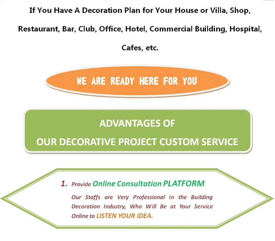 With strong supply chain of decorative materials, decorative products and engineer support team, We Can Serve Construction Contractors in Below Areas:
