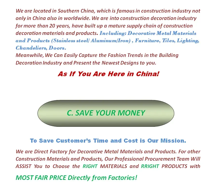 We are supplying stainless steel materials / Aluminum materials / Decorative metal products to many construction projects or interior project contractors since 2001.