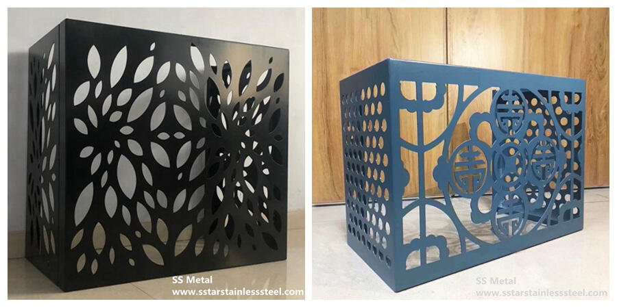 Material and finish options of air conditioner covers for outside units include weathered Corten steel and powder coated aluminum .We have many standard designs of air conditioner covers for outside units to choose from or if you want to add some real “ design decorations” to your project, simply show us a sketch or give us a theme and we’ll help you bring ‘your’ idea to life.