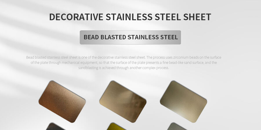 As one of the Decorative stainless steel series, Bead Blasted stainless steel is widely used in hotels, large shopping malls, wealthy clubs, colorful bars, KTV, cabinet panels, elevator decoration, ceilings, aisles, clothing display cabinets, interior decoration, hardware appliances, kitchen and bathroom appliances, advertising signs, etc.