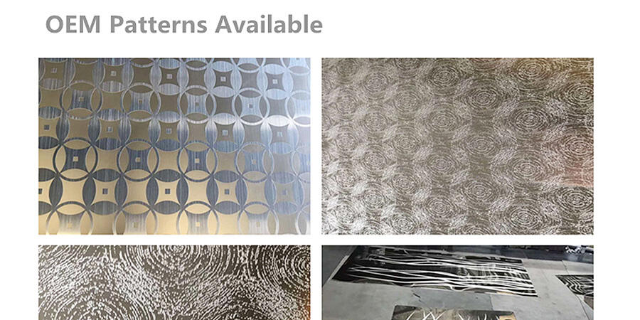 A: For stainless steel materials, we are keeping 5000mt everyday in stock for daily use. For interior and exterior stainless steel decoration, our various of decorative stainless steel patterns sheets including Etched stainless steel series will widely fulfill your demand. For sheet metal working or stainless steel processing, our 6-engineers-team and laser cutting machine, bending machine, Slotting machine, etc are ready to do the customization according to your drawings or project request. Welcome to learn more about us with our sales manager.