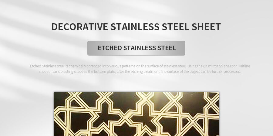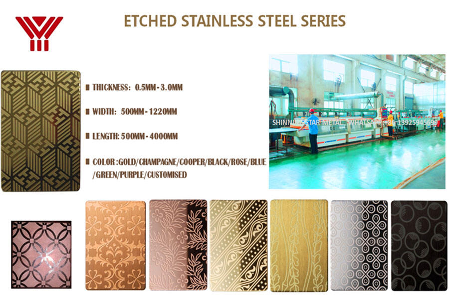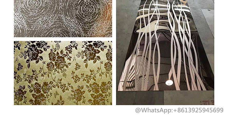 Etching Stainless Steel Application: Architectural decoration, luxury doors, decoration wall plate, elevators decorating, KTV indoor decoration, metal tank shell, ship building, decorated inside the train, as well as outdoor works, advertising nameplate, the ceiling and cabinets, aisle panels, screen, tunnel project, hotels, guest houses, entertainment place, kitchen equipment, light industrial etc.