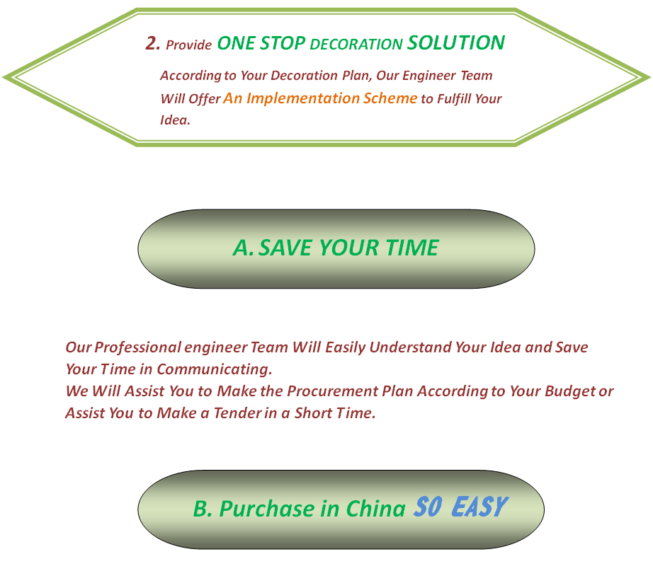 Interior and Exterior Decoration Design. Building Exterior Wall and Interior Decoration Style Customization. Professional Engineers Team will make an efficient solution according to Customer’s Tender or Request.