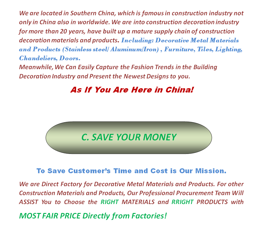 We are Supplying Stainless Steel Materials / Aluminum Materials / Decorative Metal Products to Many Construction Projects or Interior Project Contractors Since 2001.